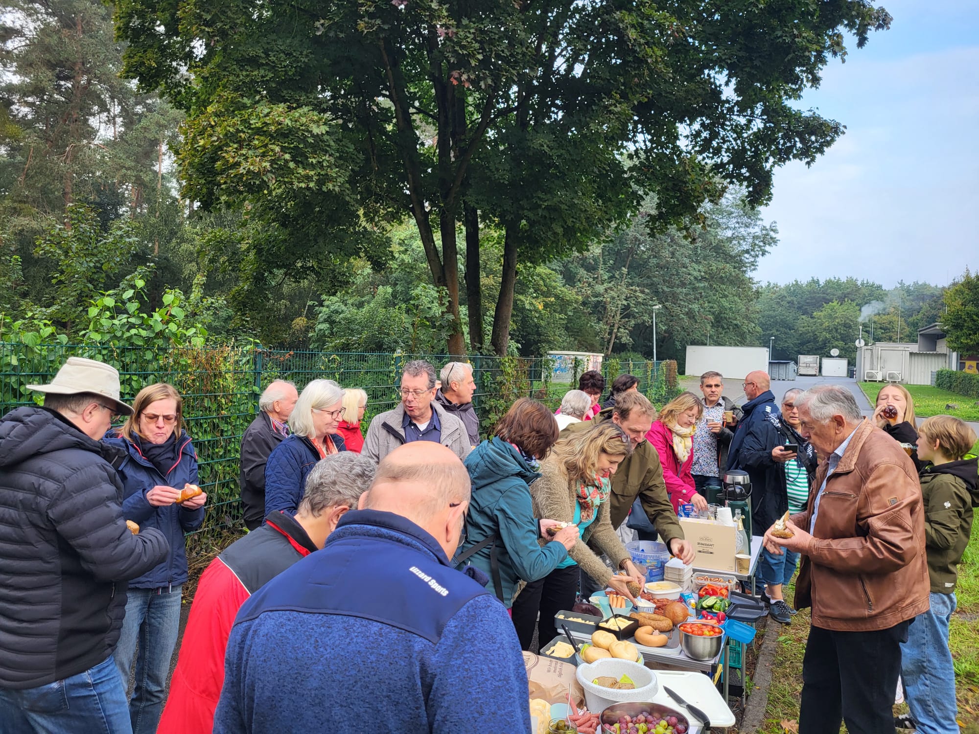„Haben wir auch Tee dabei?“ Leider nein, aber sonst fehlte nichts beim ersten Programmpunkt des Tagesausflugs: gemeinsames Frühstück neben dem Bus auf dem Rastplatz. Dieses Jahr war es eine Zwischenstation an der A 67 bei Lorsch. Und auch Petrus spielte mit, war es morgens noch regnerisch, wurde es zunehmend freundlicher.